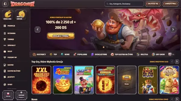 Nasze lobby kasyna obejmuje 11 000 tytułów w kategoriach: sloty, gry na żywo, gry stołowe, jackpoty i wiele więcej. Współpracujemy z dostawcami takimi jak Play’n GO, Pragmatic Play, Evolution Gaming, NetEnt, Playtech, Microgaming, Yggdrasil, Nolimit City, Spinomenal i ELA Games. Ponieważ dodajemy i rotujemy zawartość, dokładna lista może się zmieniać, ale główne kategorie pozostają stabilne dla regularnej gry. Wielu graczy wybiera Dragonia Casino ze względu na różnorodność, a jednocześnie znajduje znane serie od topowych studiów. Jeśli chcesz szybko przeglądać ofertę, użyj filtrów według dostawcy, wariancji lub typów funkcji.